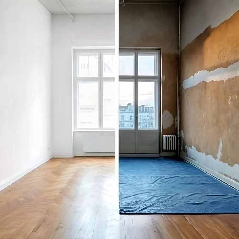 Alte Wandbeläge, wie z. B. Tapeten, werden entfernt. Der Untergrund muss tragfähig, trocken, sauber und saugfähig sein.