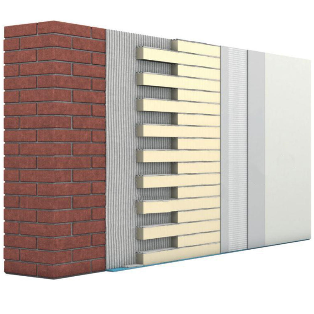 Dabei handelt es sich um ein kapillaraktives Innendämmsystem aus Polyurethan-Hartschaum zur Herstellung einer hocheffizienten, diffusionsoffenen Innendämmung mit kapillarem Feuchtetransport.